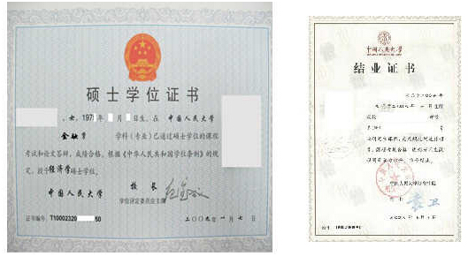 具有学士学位后,工作满三年者,通过国家教育部同等学力申硕统一考试(外语、学科综合考试),可申请进入硕士论文写作阶段,通过答辩后,按国家规定由中国人民大学授予硕士学位(国家学位办统一监制、统一编号)。根据研究生课程进修班的要求,经过考核,培养方案规定的各门专业课成绩 均合格,达到规定学分者, 颁发《中国人民大学研究生课程进修班结业证书》(钢印、红印、统一编号),成绩单(红印)。 以上证书。可作为学员评聘专业技术职务职称具有研究生同等学力的参考依据。
